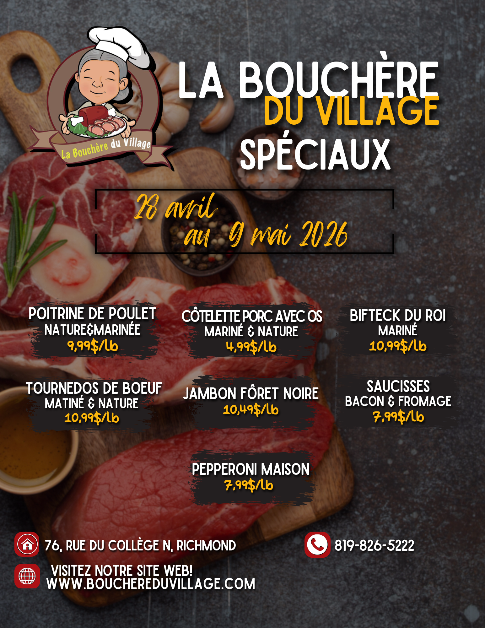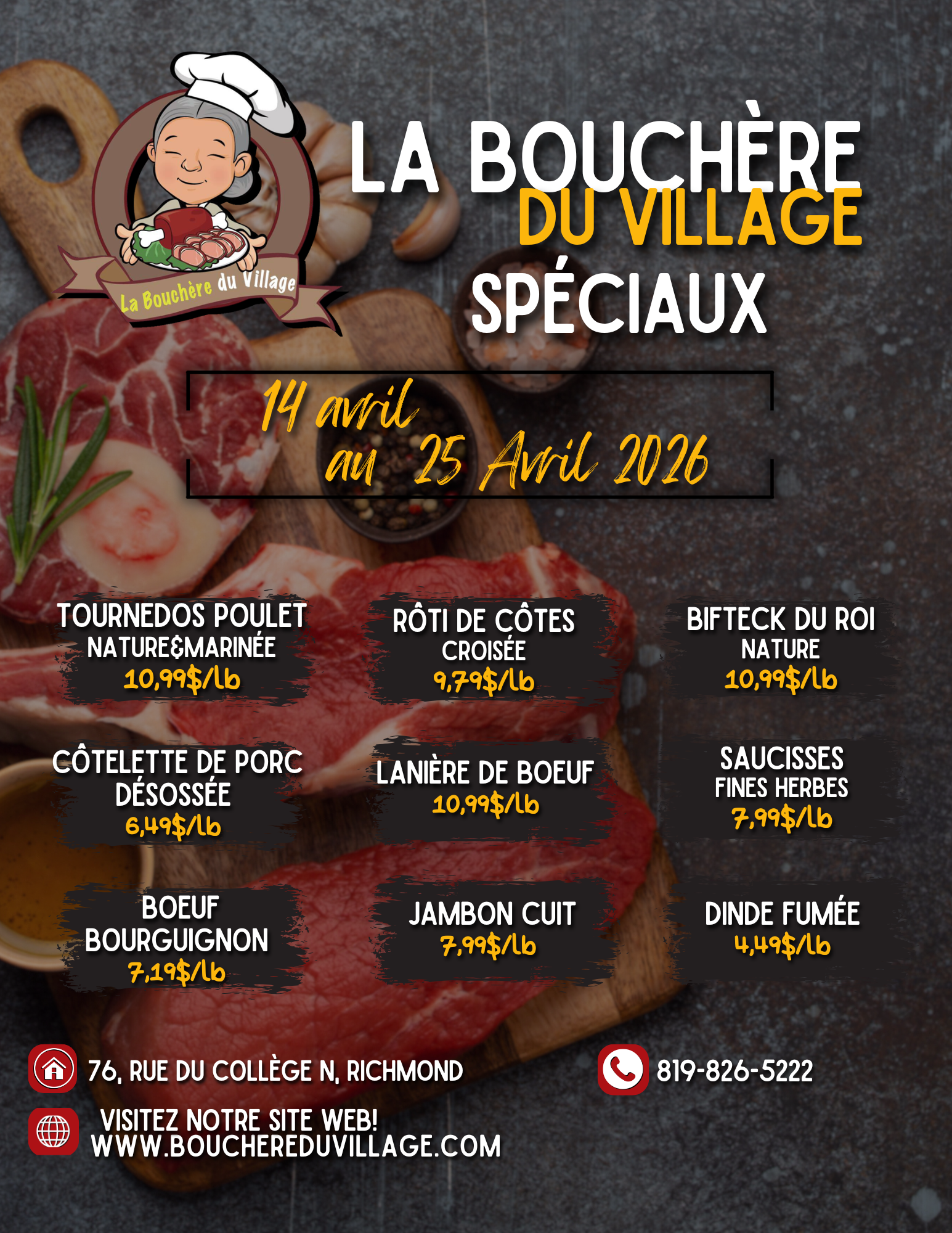 C’est avec un immense plaisir que nous vous recevrons dans notre boutique située au 76, rue du Collège Nord, à Richmond pour vous faire découvrir tous nos produits de boucherie et de prêt-à-manger.