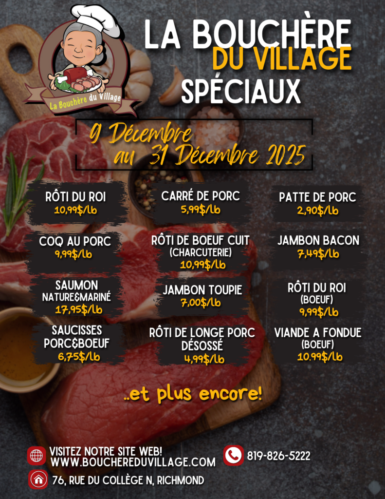 Regardez plus bas pour les spéciaux du temps des fêtes !